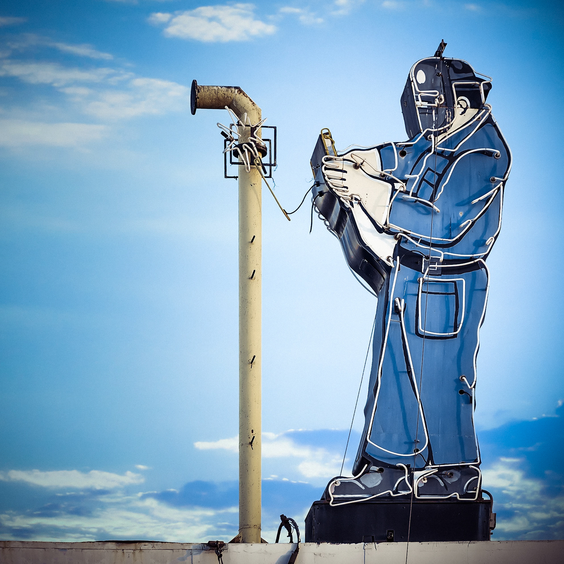 These signs take us back to the beginning of advertising, to the consumer culture of the fifties and sixties with its still undelivered promise of prosperity. My search took me across the whole of Southern California, where I captured signs from old gas stations, motels, diners, and burger bars. Authentic symbols of the American way of life.